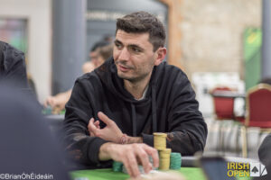 From the 888 players that started the event, only 56 came back at lunchtime with the dream of becoming the champion. The first to have their dreams dashed was local Padraig Burns, who cashed for €800.