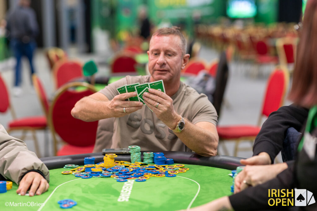 There should also be a special mention for Randy “Gucci Man” Hagen from the United States who had a custom-made outfit in the colours of the Irish flag created in Europe, shipped back to the US and then brought back here for the special occasion. He finished in sixth place, while Irish Open regular June Jenkins from Canada narrowly missed a final table appearance after she and Michael Morrissey busted from different tables to earn €1,122 each.