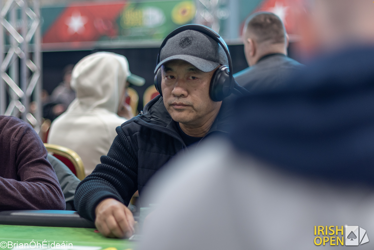 There was roughly 12,000 chips in the middle on a board of . Marcelo Bonanata bet the pot with a 12,900 chip stack, Tong Li in the big blind called. The river went check-check as the fell on the river.