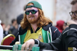 James Hall, who is sporting a Kevin Keegan era Fulham away shirt, called an all-in from the big blind for 320,000. He was covered by American Nicolas Theodorowicz in the button.