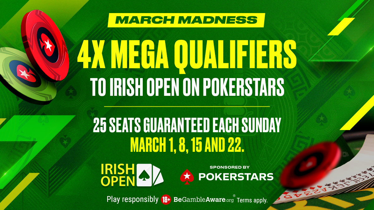 As we come within shouting distance of this year’s Irish Open, PokerStars has unleashed a full-blown season of March Madness – mega-satellites running every week and each guaranteeing 25 seats to the €2.5 million guaranteed Irish Open Main Event.