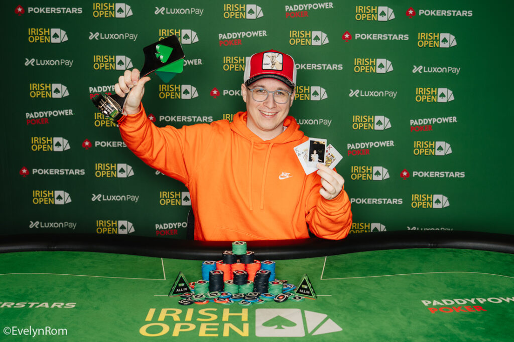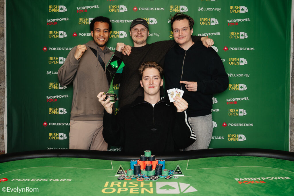 The €1 million guaranteed Luxon Mystery Bounty was due to end today but, with only seven players left in the early evening, it was decided to keep going. Tudor Bartha took it down – his first live event victory – for €110,700 (€96,700 cash prize plus bounties). Tudor’s victory provided the first six-figure cash of the 2026 Irish Open and also bring the prize money awarded so far to more than €1.8 million.